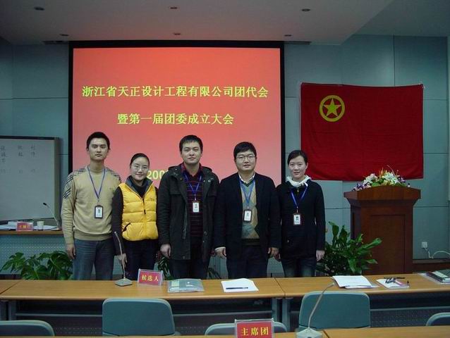 共青团浙江省天正设计工程有限公司代表大会暨团委成立大会于2009年12月25日在公司南四楼会议室举行。会议听取并通过了公司上一届团总支所作的工作报告;经中化蓝天集团公司团委批准,成立共青团浙江省天正设计工程有限公司委员会,本次大会宣布公司团委成立并选举产生了公司新一届团委委员。