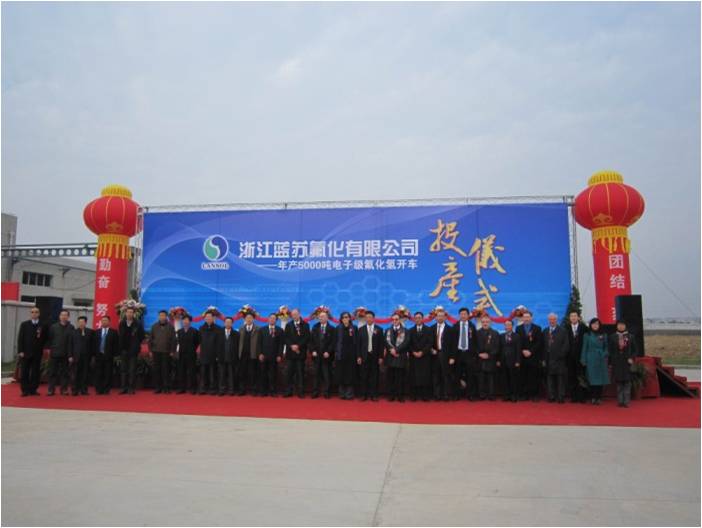 12月10日,我司工程总承包项目―浙江蓝苏氟化有限公司电子级HF项目投产仪式在衢州高新技术园区隆重举行。公司副总经理严和钦及商务部、资产财务部、项目经理等有关人员参加了投产仪式。